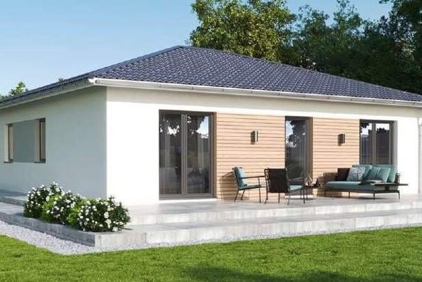 Komfort ganz ohne Treppen Wohnen auf einer Ebene bietet Ihnen viele Vorteile. Das Ausgewogene 105 mit Walmdach bietet Ihnen auch im späteren Alter Komfort – auf Wunsch auch komplett barrierefrei gestaltbar. Vom großzügigen Wohnzimmer aus, führt eine Terrassentür ins Grüne. Auch die Funktionsräume sind gut durchdacht: An die offene Küche schließt eine Speisekammer an, ein geräumiger Hauswirtschaftsraum macht die Hausarbeit für Sie leicht.