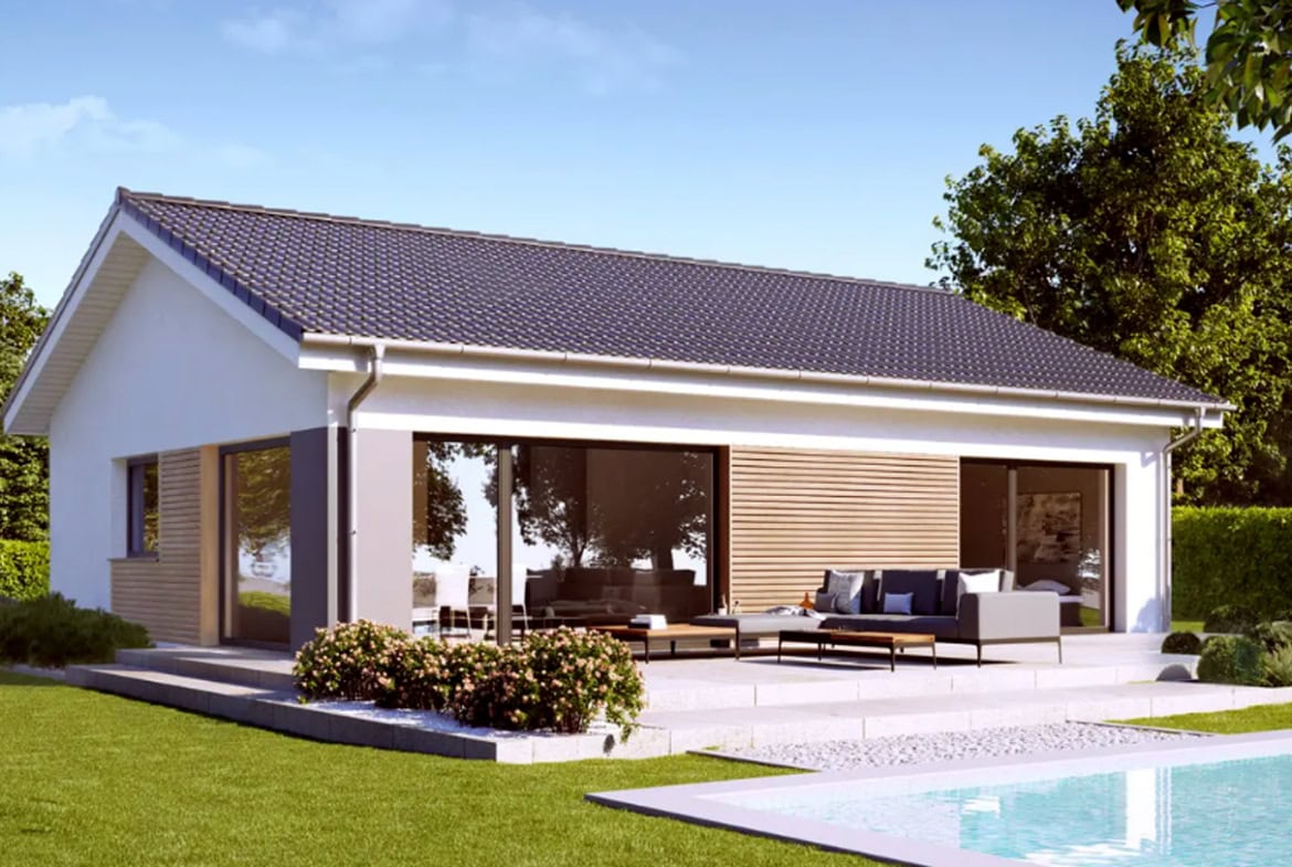 Es gibt Häuser, die man betritt — und solche, die einen empfangen. Dieser Bungalow gehört zur zweiten Art. Er ist weniger ein Bauwerk als ein stiller Begleiter, der sich an den Rhythmus seines Menschen anschmiegt. Drei Zimmer, eine offene Küche, Bad, Technikraum, Diele: nüchtern betrachtet eine Aufzählung. Doch in Wahrheit sind es Räume, die sich nicht über ihre Funktion definieren, sondern über die Persönlichkeit, die sie füllt.