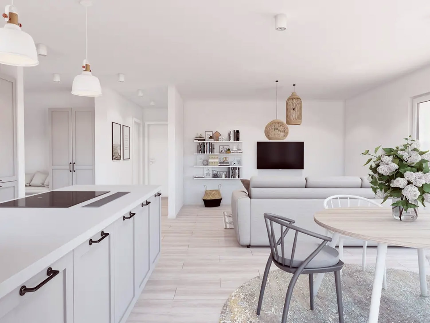 Die Garderobe wird zum ersten Dialog zwischen Alltag und Ankommen. Die Diele ist kein Durchgang, sondern ein Moment des Übergangs — vom Außen ins Eigene. Die offene Küche ist nicht nur ein Ort des Kochens, sondern der Begegnung, der Aromen, der Gespräche, die bis in die Nacht tragen. Jeder Raum ist ein Echo der Person, die hier lebt: ihrer Gewohnheiten, ihrer Sehnsüchte, ihrer Art, die Welt zu betrachten.