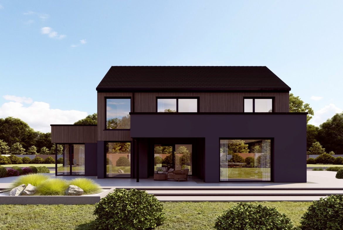 Große Fensterflächen sorgen für Licht, klare Linien für Ruhe.