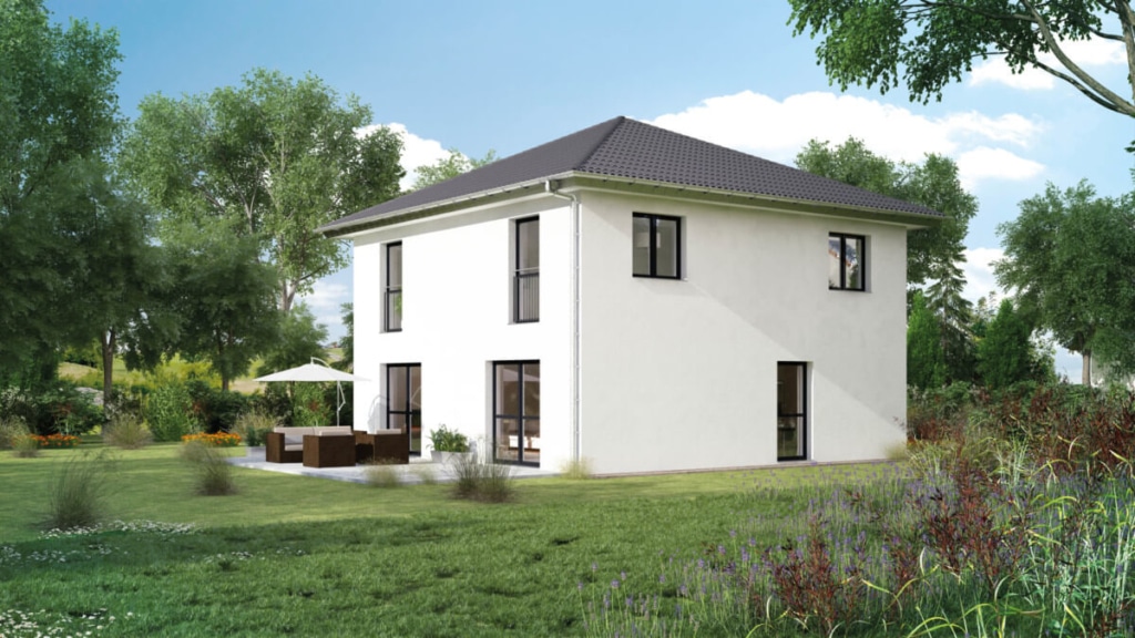 Das moderne Fertighaus SH 114 S Variante A von ScanHaus Marlow ist eine kompakte und vielseitige Stadtvilla mit Zeltdach Architektur. Auf gerade mal 113 m² Wohn- und Nutzfläche bietet das Einfamilienhaus viele Gestaltungsmöglichkeiten auf zwei Ebenen. Der Grundriss im Erdgeschoss ist klar gegliedert. Zur Hauseingangsseite ist der Flur mit Treppe, die geschlossene Küche, das Gäste-WC und der Hauswirtschaftsraum angeordnet. Der offene Wohn- und Essbereich liegt an der Garten- oder Terrassenseite. Der Grundriss im vollwertigen Obergeschoss verfügt über drei weitere Zimmer sowie ein großzügiges Badezimmer. Die moderne Stadtvilla SH 114 S Variante A von ScanHaus Marlow bietet viele Gestaltungsmöglichkeiten und auch der Hausgrundriss ist auf Wunsch individuell veränderbar.