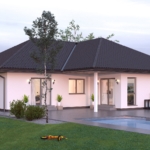 Das moderne Einfamilienhaus im Landhausstil mit Satteldach, Carport & Garage ist ein individuell geplantes Fertighaus vom Hersteller WeberHaus der Baureihe “sunshine”. Der rund 180 qm große Haus Grundriss verfügt über 6 Zimmer und ist ideal für eine vierköpfige Familie geeignet. Das Erdgeschoss ist offen gestaltet mit einem großen Wohn- und Esszimmer, integrierter Küche, Terrasse und Arbeitszimmer. Über eine gerade Treppe aus Holz gelangt man in das Obergeschoss. Hier stehen 3 Kinderzimmer, ein Schlafzimmer mit Ankleide und ein großes Badezimmer mit Sauna zur Verfügung. Ein echter Hingucker ist die graubraune Putz Fassade mit Holz Elementen und das Sitzfenster im Erker. Das moderne Satteldach Haus im Landhausstil vom Fertighaus Hersteller WeberHaus ist ein KfW-Effizienzhaus 40 Plus und verfügt über eine PV-Anlage sowie einen Batteriespeicher.