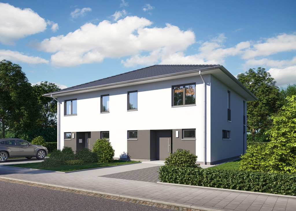 Stadtvilla als Doppelhaus Doppelt hält bekanntlich besser. Wie wäre es denn mit dieser schicken Stadtvilla als Doppelhaus? Ob mit Putz oder einem von Ihnen ausgewählten Verblender – dieses elegante Eigenheim bietet Platz für gleich 2 Haushalte. Mit einer großzügigen Wohnfläche von rund 120 qm und einem lichtdurchfluteten Wohnbereich lässt es sich wahrhaftig gut leben. Ein weiterer Pluspunkt:...